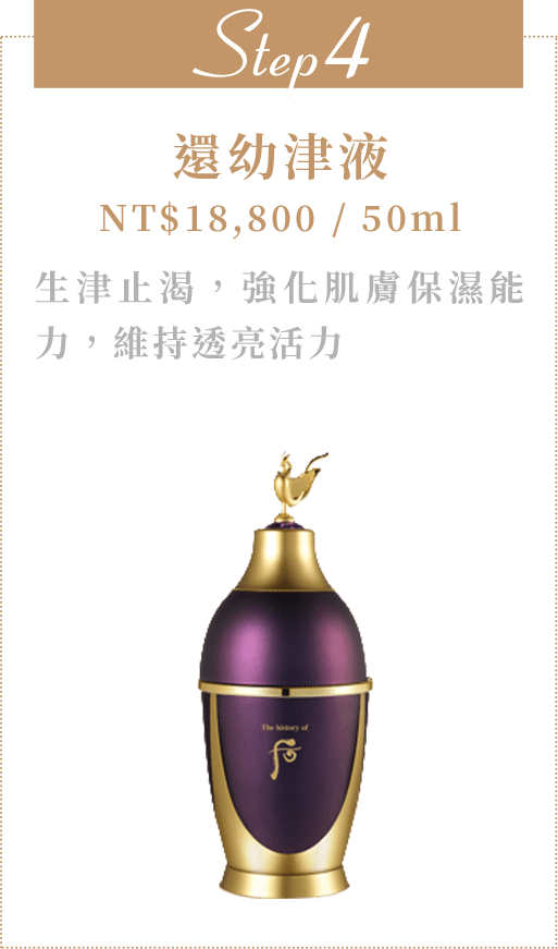 70種以上宮廷珍稀秘方調和肌膚調理至平衡狀態,重現完美青春光澤。